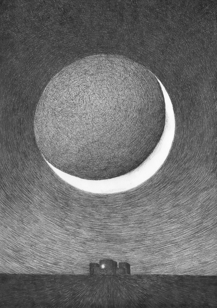 Księżyc czy pająk?, tusz na papierze, 42×29,7cm