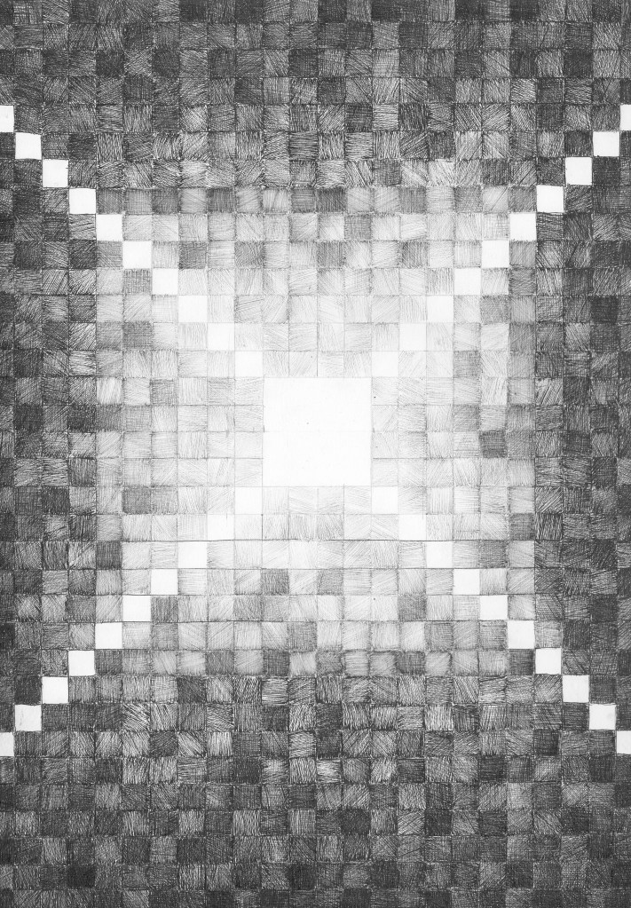 Tam miał być człowiek, a wyszła abstrakcja metafizyczna, tusz na papierze, 42×29,7cm