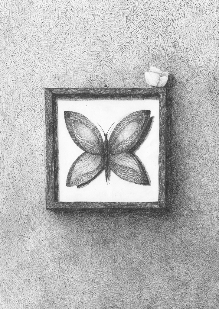 Szczęście w ogrodzie botanicznym, tusz na papierze, 42×29,7cm