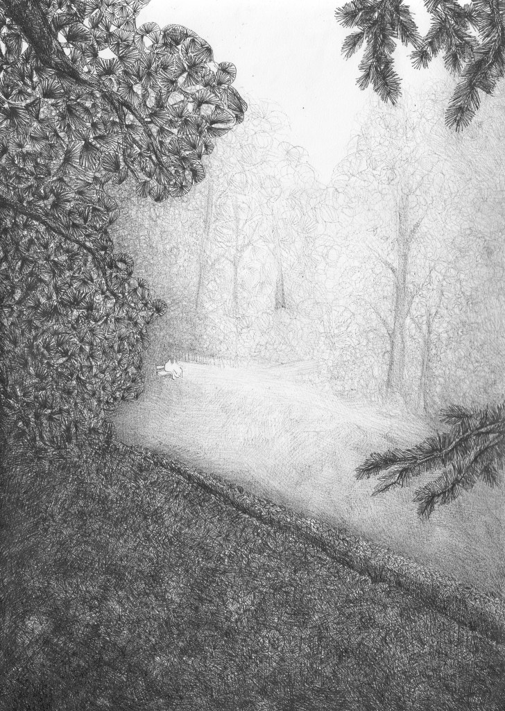 Cień w lesie, tusz na papierze, 42×29,7cm