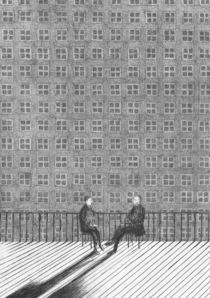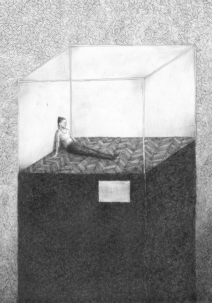 To zdecydowanie powinno być w kolorze i może będzie, a ja zdecydowanie powinnam być w Atenach i może też będę, tusz na papierze, 42×29,7cm
