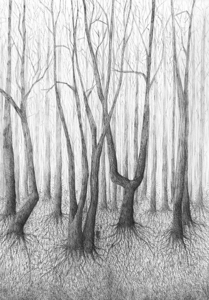 Z prochu powstałeś i w proch się obrócisz, czyli urodzinowy rysunek z motylkami jak co roku, tusz na papierze, 42×29,7cm
