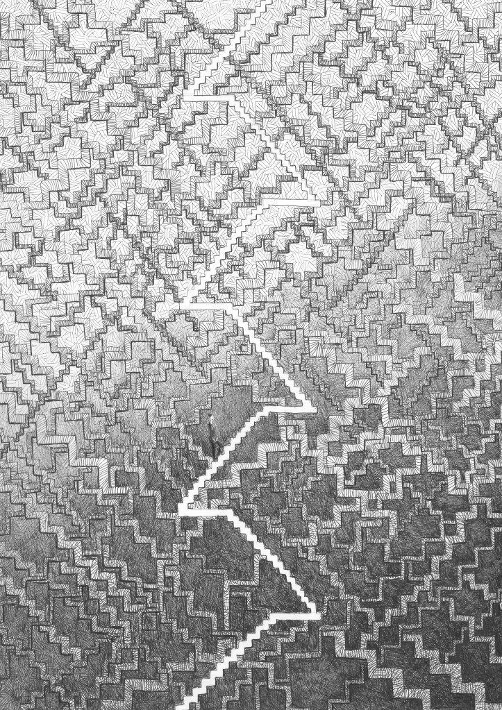 Trzecie piętro bez windy, tusz na papierze, 42×29,7cm
