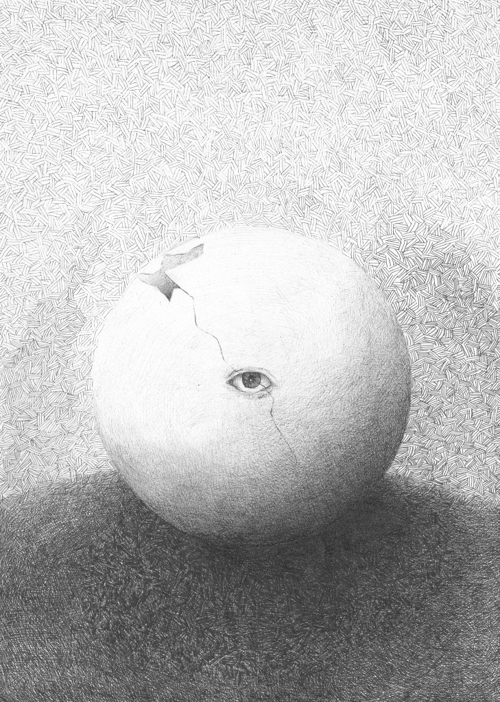 Wszechświat zamknięty na wstędze Möbiusa, tusz na papierze, 21×29,7cm
