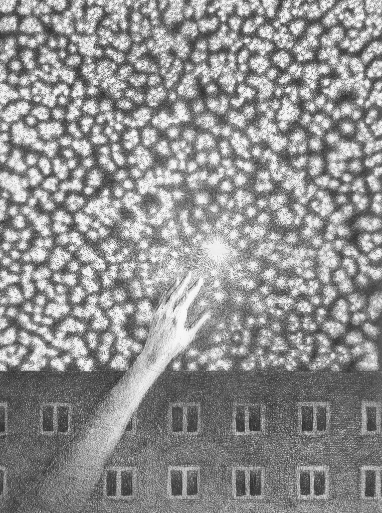 Gwiazdka z nieba trochę za daleko, tusz na papierze, 42×29,7cm
