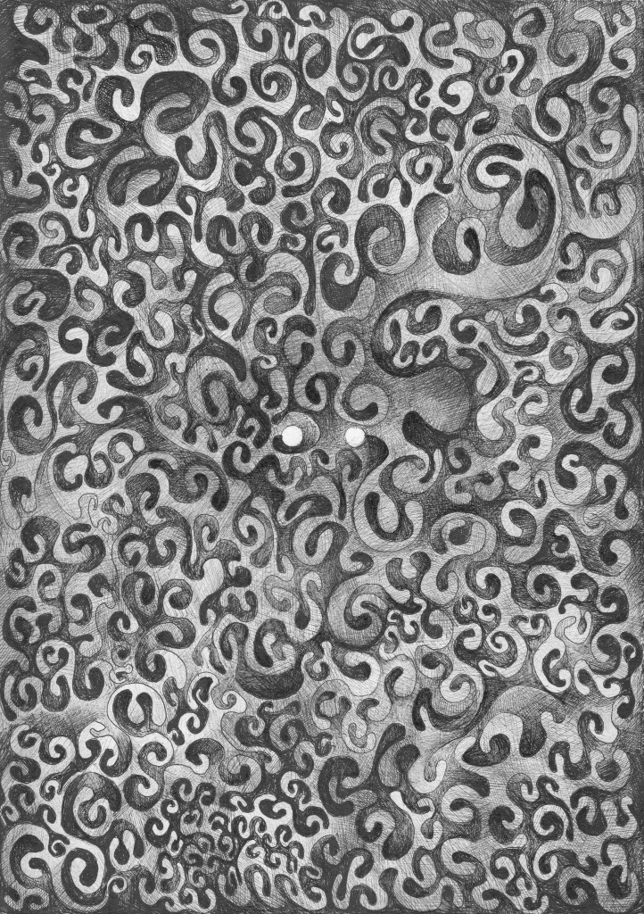 Początek nieskończoności, tusz na papierze, 42×29,7cm