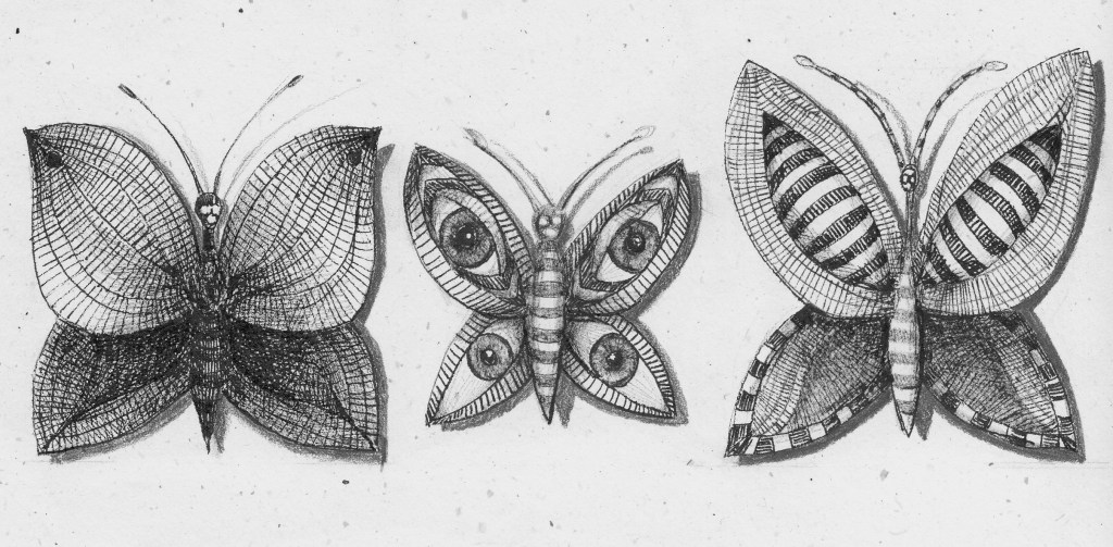 Proces powstawania motyli jest długi i skomplikowany. Składa się on z kilku etapów. Gąsienica to moment, kiedy przyszły motyl nie wychodzi z domu, tylko zalega pod kocem albo kołdrą w ciemnym pokoju. Kiedy zdecyduje się zobaczyć rozgwieżdżone niebo – zmienia się w poczwarkę. Jest to moment krytyczny, bo albo przepoczwarza się ona w motyla, albo cofa się do poprzedniego etapu